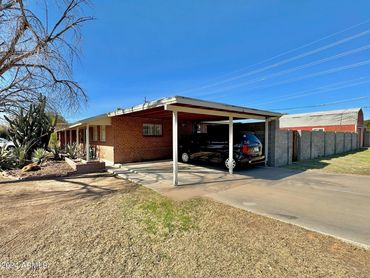 Carport prior to demo. New home will have a 2-car garage (23'L)